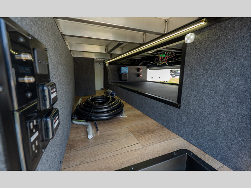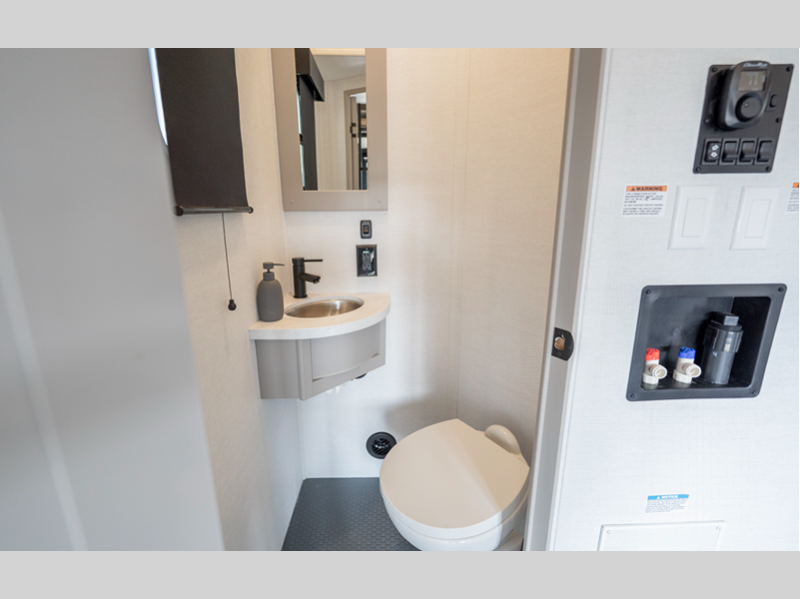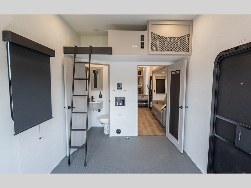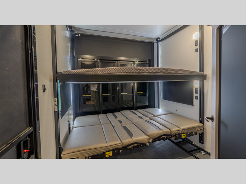 The 101" wide-body benchmark chassis provides plenty of space to bring along the dirt bikes, four-wheeler, or kayaks, and the Azdel-backed fiberglass sidewalls are ultra durable so you can enjoy your RV for years to come. You will appreciate the Garage Management System that includes a weather resistant ramp door, a fully insulated garage floor, and a multi-point tie-down system to keep your toys secure during transport. The interior will have you feeling at home with black cabinetry hardware, residential LED recessed ceiling lights, a large residential shower, and many more comforts.